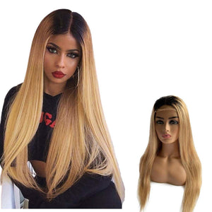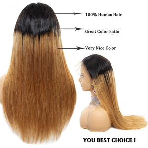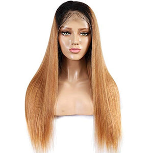 13X4 Wig Lace Fontal Straight Human Hair 150% Density Black T1B/27
